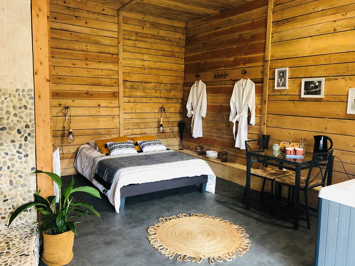 Une suite intimiste et cocooning de 25 m² avec spa privatif, douche XXL, terrasse privative et entrée indépendante.