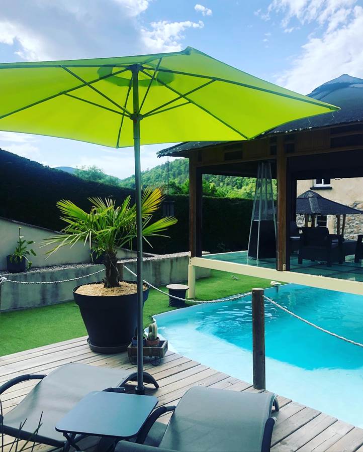 Le domaine dispose de 2 chambres d'hôtes et 2 gites qui partagent tous les espaces extérieurs (terrasses, ilot polynésien, terrain de pétanque et piscine et transats en saison).